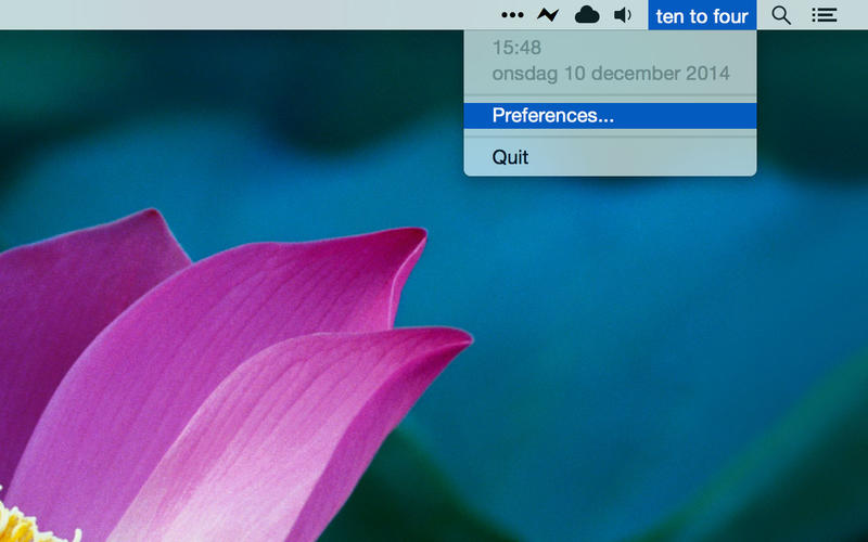 Note: One feature that didn't make it from FuzzyClock is the ability to move the app to the right, where the standard clock in OS X is. The reason for this is that it would require using some private API:s that Apple wouldn't allow on the App Store.