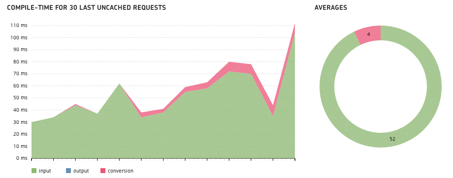 So first up we have a graph and a donut chart which shows us how fast uncached pages are built. The “conversion” area is pretty small, so I added the click-to-zoom-feature here too:
