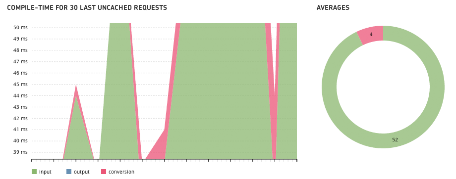 So first up we have a graph and a donut chart which shows us how fast uncached pages are built. The “conversion” area is pretty small, so I added the click-to-zoom-feature here too: